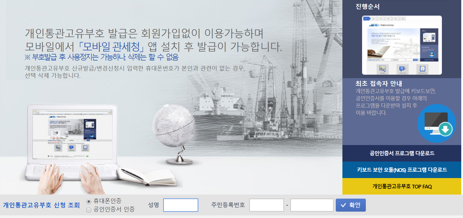 아래에 개인통관고유부호를 발급 받고 조회할 수 있는 공식 사이트에서 회원가입할 필요 없이 쉽고 간단하게 진행이 가능합니다