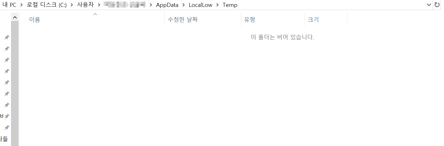 c드라이브 -> 사용자(or User) -> 사용자이름 -> Appdata -> Locallow -> Temp