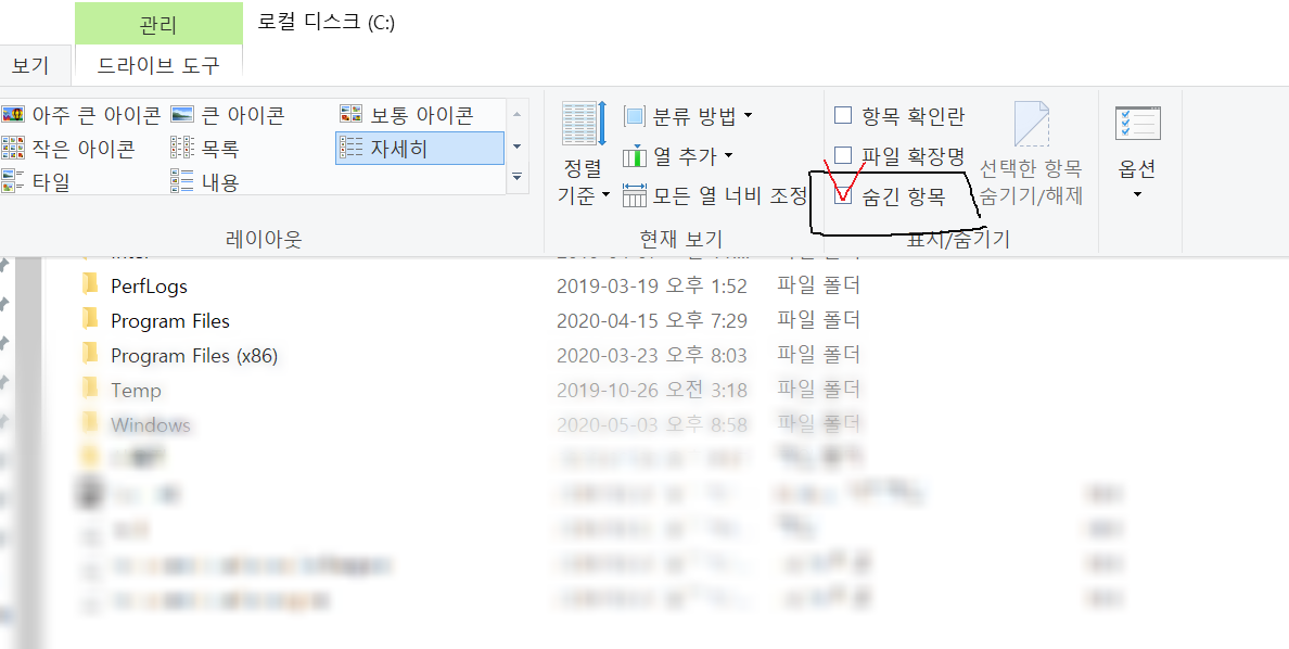 윈도우10 C드라이브의 User 혹은 사용자 폴더에 있는 appdata로 접근하려면 먼저 숨긴 항목을 체크 해 주어야 볼 수가 있습니다.