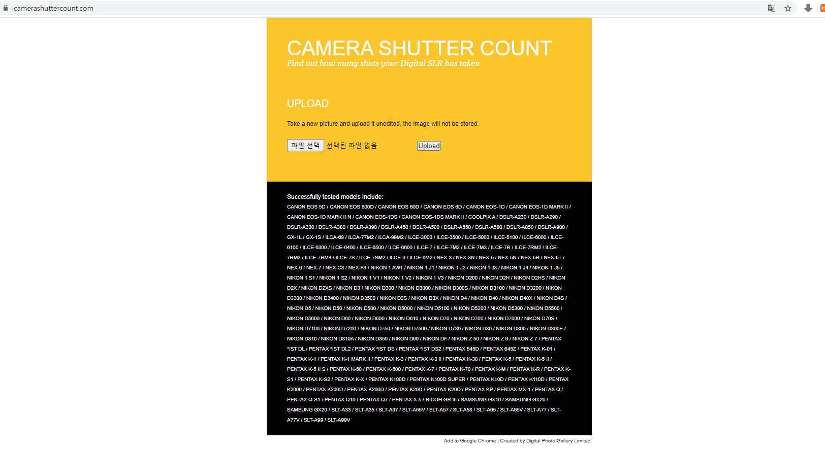 Camera Shutter Count (컷수 확인 하는 사이트)