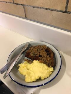 으깬감자와 양송이 소스를 곁들여 주문을 하면 가격은 7.25유로!