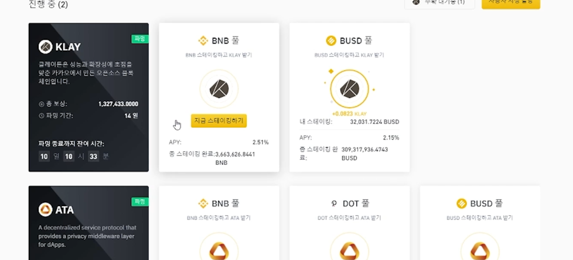 바이낸스코인이나 바이낸스USD를 예치하면 클레이를 지급합니다