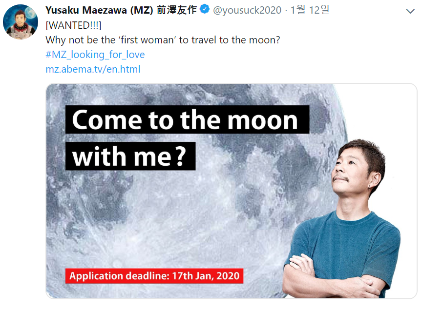 일본의 한 억만장자가 자신의 트위터에 글을 하나 게시하게 됩니다